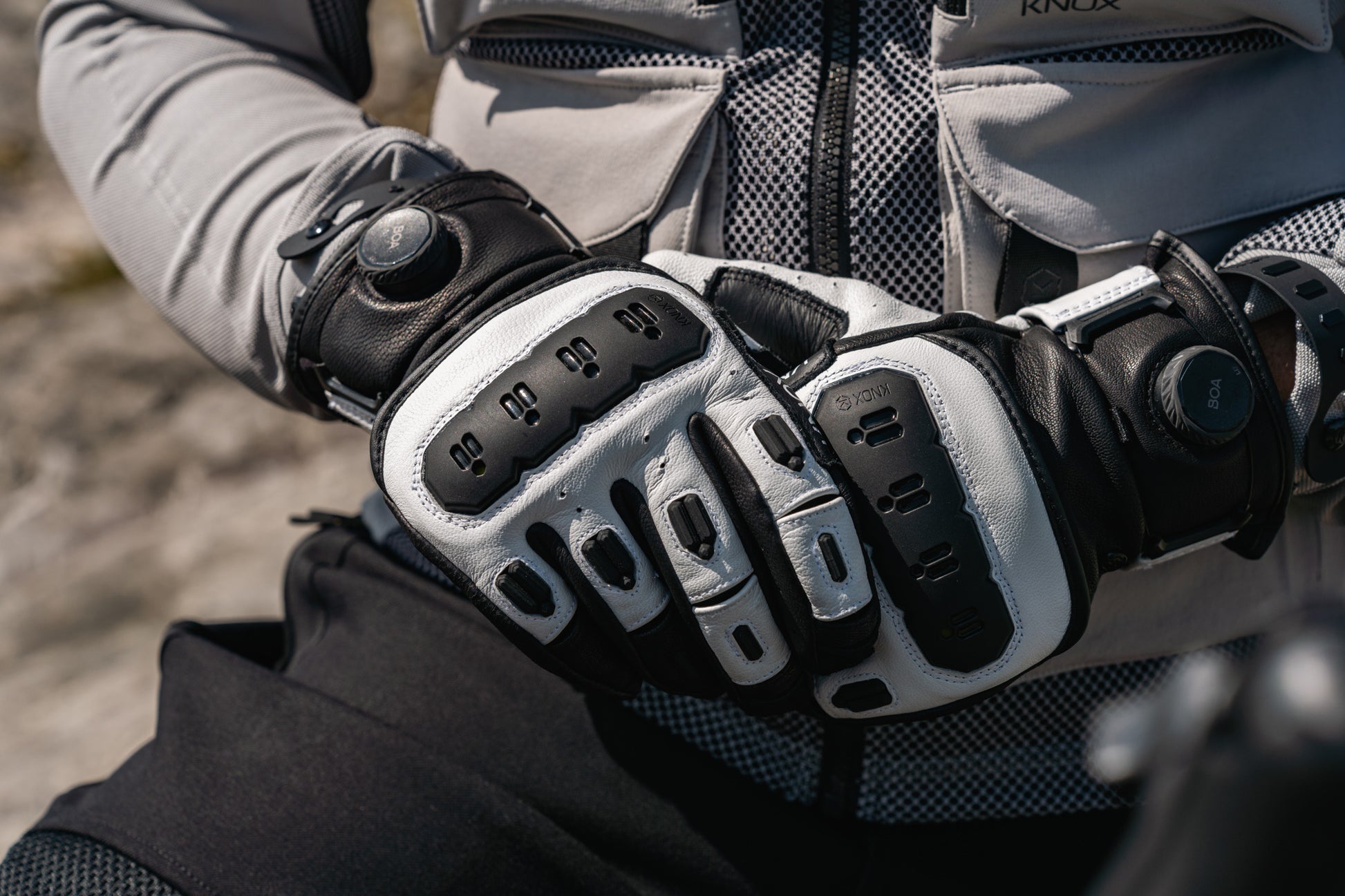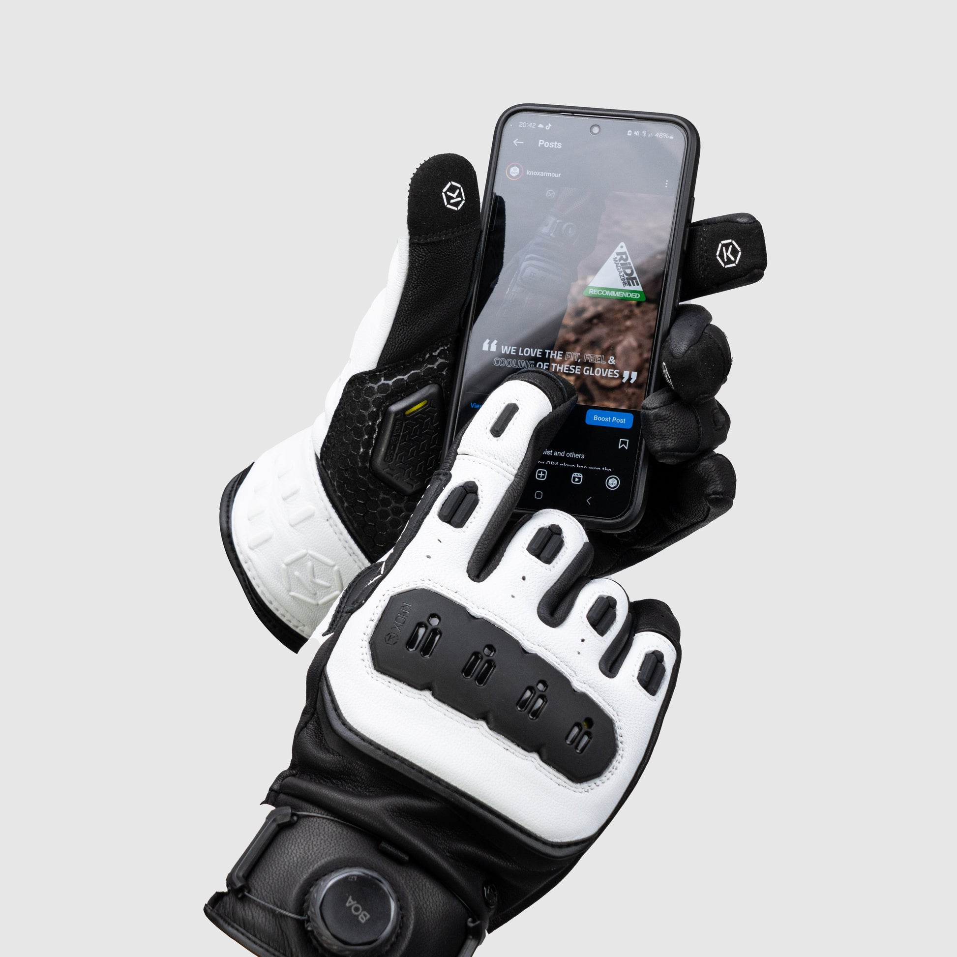 Leather MK3 has a new Micro-Lock filled plastic floating knuckle for impact absorption that is also comfortable and of course the patented Knox Scaphoid Protection System on the palm.